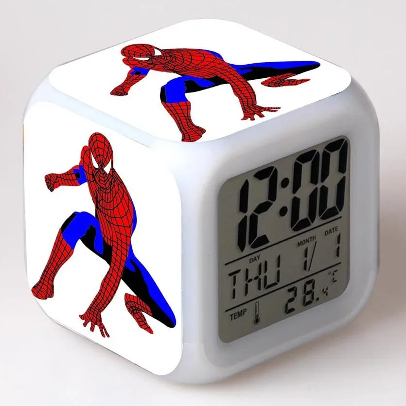Marvel Colorful Spider-Man Alarm Clock – Creative Cartoon LED Mood Clock with Quad Alarm